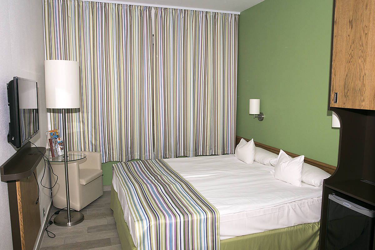 Hotel nabízí 1 a 2 lůžkové pokoje STANDART (s možností 1 přistýlky) a pokoje SUPERIOR (bez možnosti přistýlky), které jsou vybaveny klimatizací, koupelnou, WC, SAT-TV, telefonem. Pro rodiny s dětmi je ideální ubytování v rodinných pokojích (dva 2 lůžk. pokoje STANDART vedle sebe propojené dveřmi).