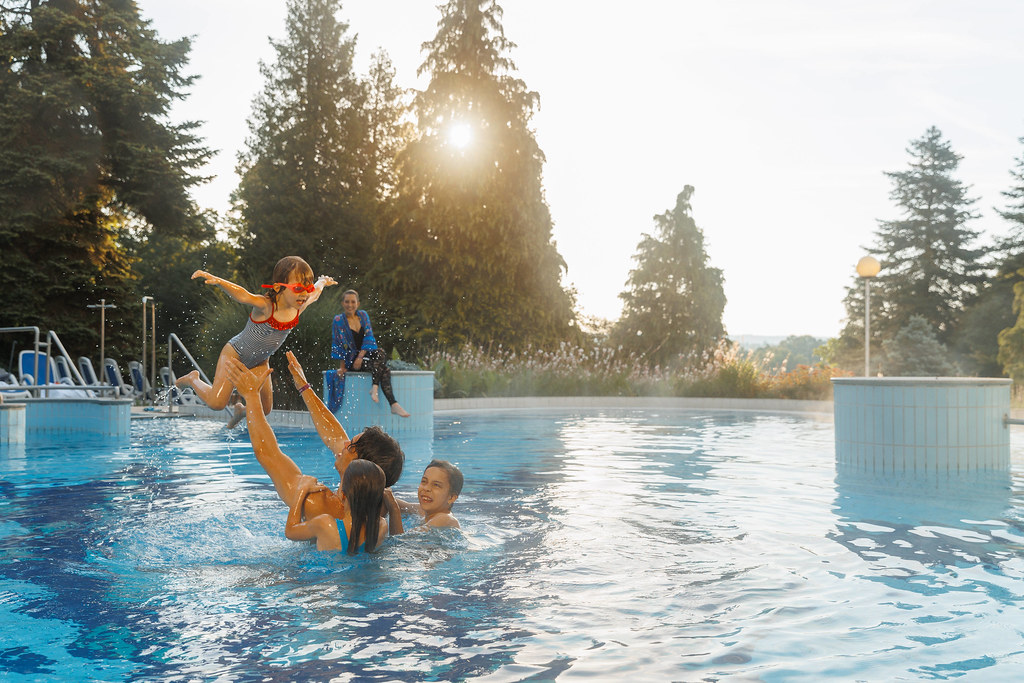 V areálu u termálního jezera je dětský plavecký bazén a baby bazén pro děti do 3 let.