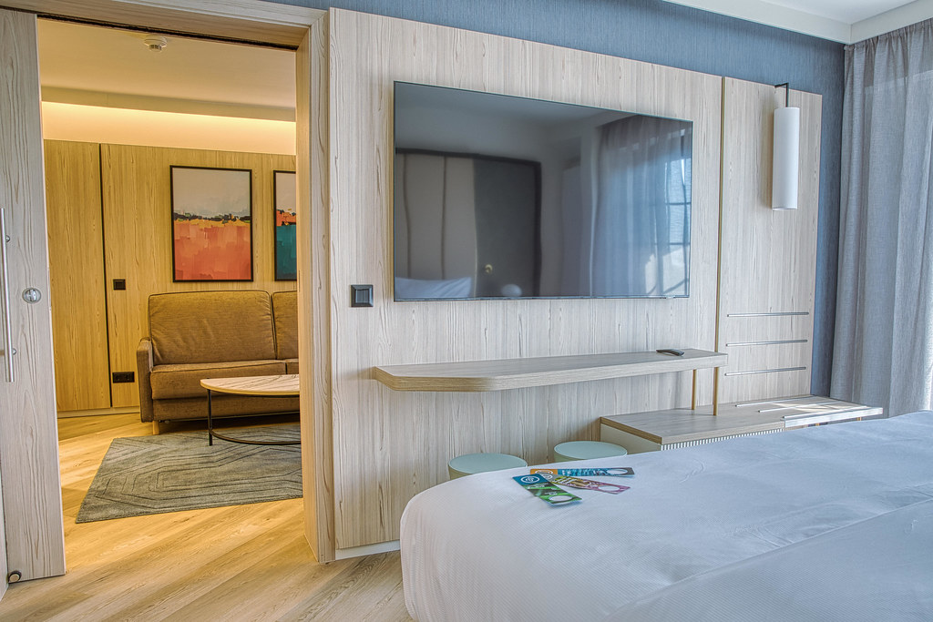 Pokoje SUPERIOR (22 m²) 4. - 7. patro s možností přistýlky pro dítě, s výhledem na město. Vybavení pokojů: klimatizace, koupelna s vanou nebo sprchou, WC, fén, župan, TV, telefon, Wi-Fi zdarma, trezor, mini-bar (za poplatek), rychlovarná konvice s kávou a čajem. Možnost propojení pokojů. Pokoje jsou kompletně renovované.