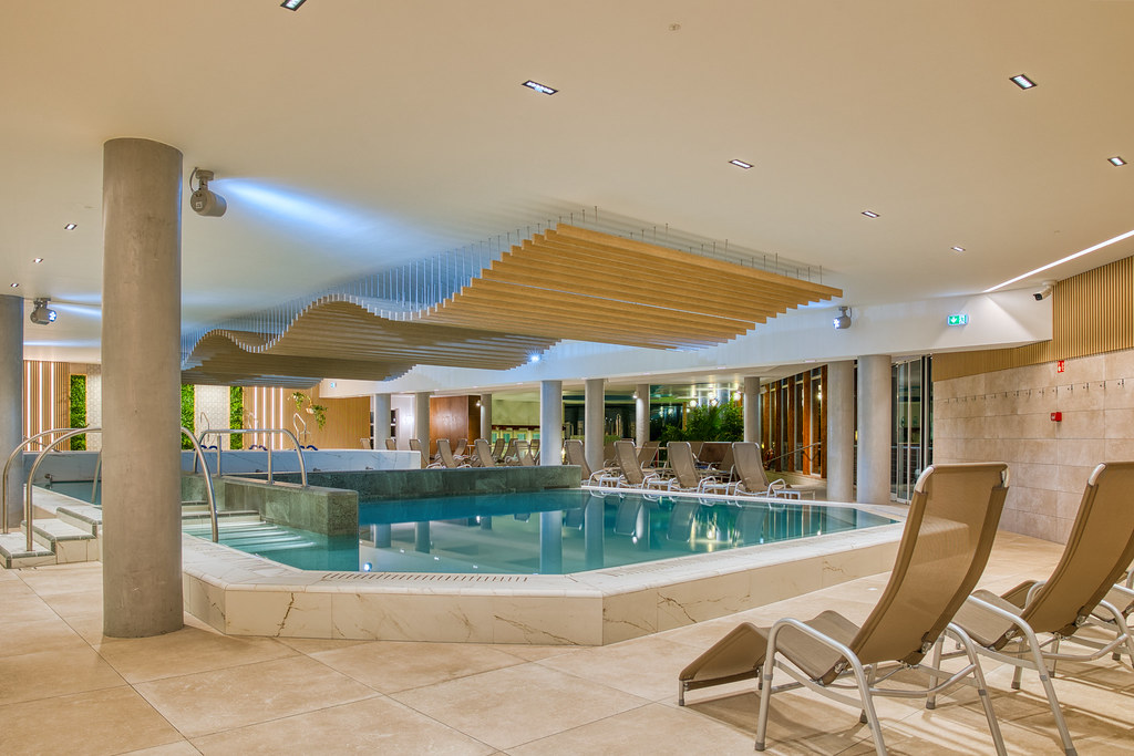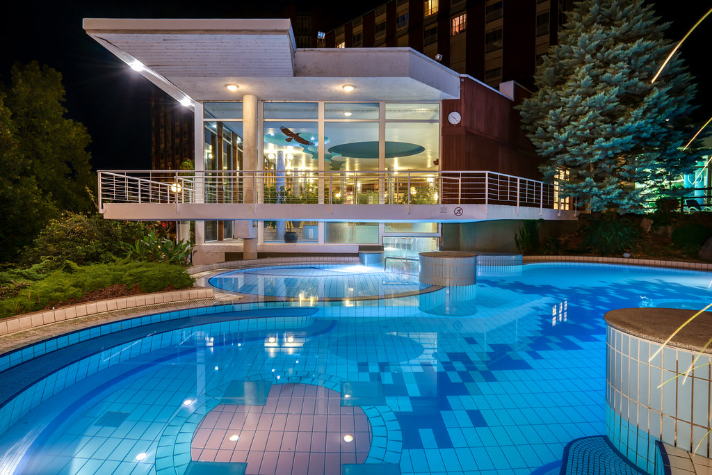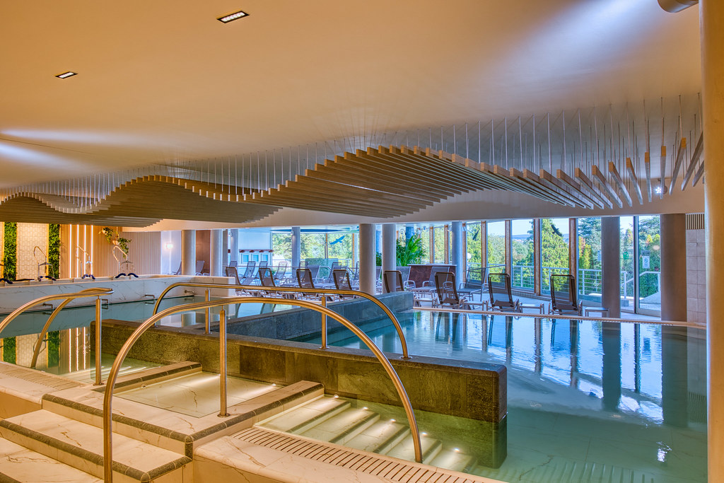Hotel nabízí neomezené využívání všech termálních bazénů (venkovní plavecký bazén 20-26 °C (v létě), zážitkový bazén o celkové rozloze 200 m² a teplotě 29 °C vč. atrakcí jako jacuzzi, masážní trysky, gejzír a vodopád, 2x vnitřní termální bazén 34 °C a 37 °C, vnitřní brouzdaliště 30-32 °C, vnitřní dětský bazén se skluzavkou 30-32 °C). Dále k dispozici zrekonstruovaný svět sauny (finská, bio, infra, parní kabina), venkovní Kneippův chodník, sluneční terasa, fitness, stolní tenis, skupinové sportovní programy.